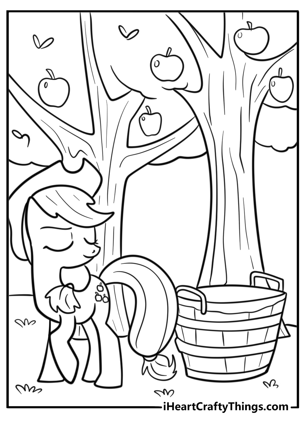 Travel to Ponyville with free Applejack coloring pages! This collection of 25 black and white line drawings brings the lovable Applejack to the spotlight for you to color and enjoy.