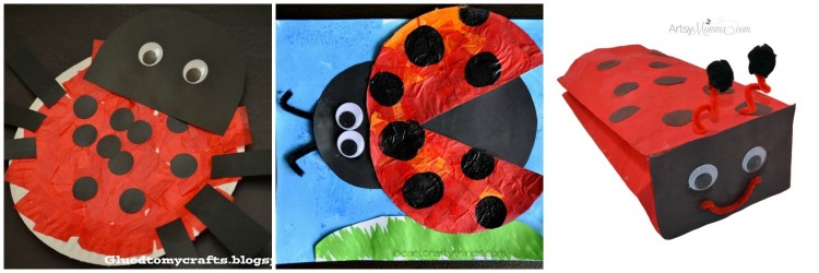 Click on the links below the pictures to be taken to the original crafts and tutorials and to pin individual crafts. I hope you feel inspired by all this beautiful red and black and get crafting ladybugs with your kids.