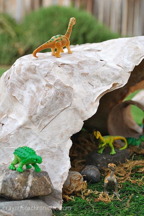 Dinosaur Paper Mache Cave and Small World Play from Crayon Box Chronicles