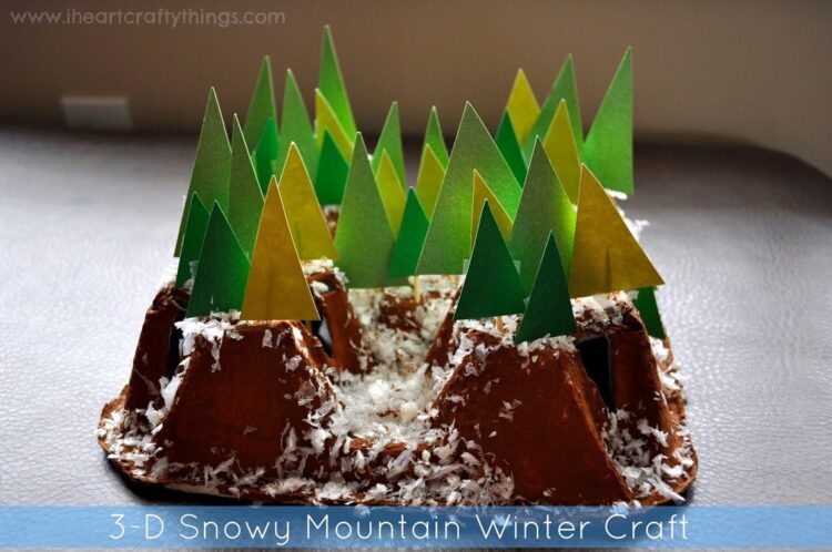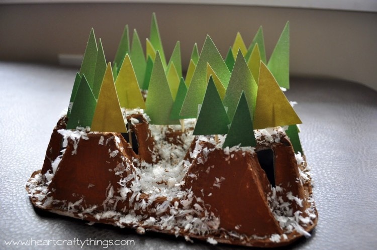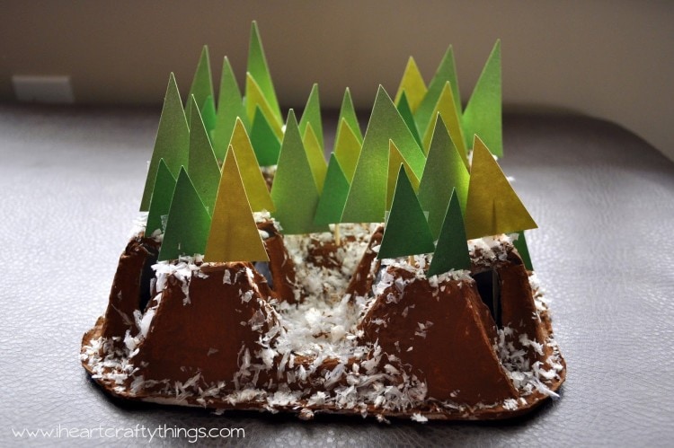 3-D Snowy Mountain Winter Craft (out of Recycled Drink Carrier)