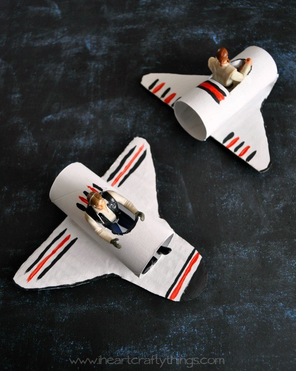 What I adore most about this craft is that it’s sturdy and kids can use it for play. My children put some of their Star Wars figurines in their shuttles and after they flew them around the house for an afternoon, I am happy to report the space shuttles are still intact and ready for flight again soon.