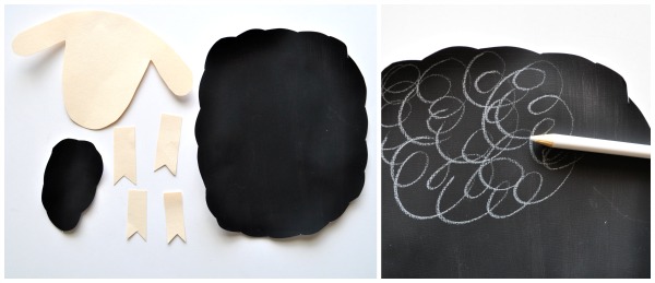 Use your white pencil or crayon to draw wool squiggle lines all over your black sheep wool, both the body and top of the head.