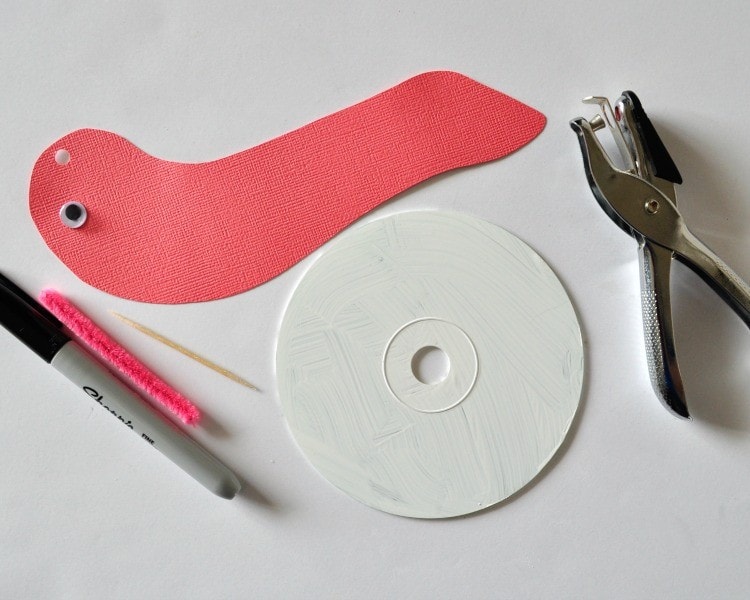 Start by painting the bottom of your CD with white paint. Let it dry completely.
