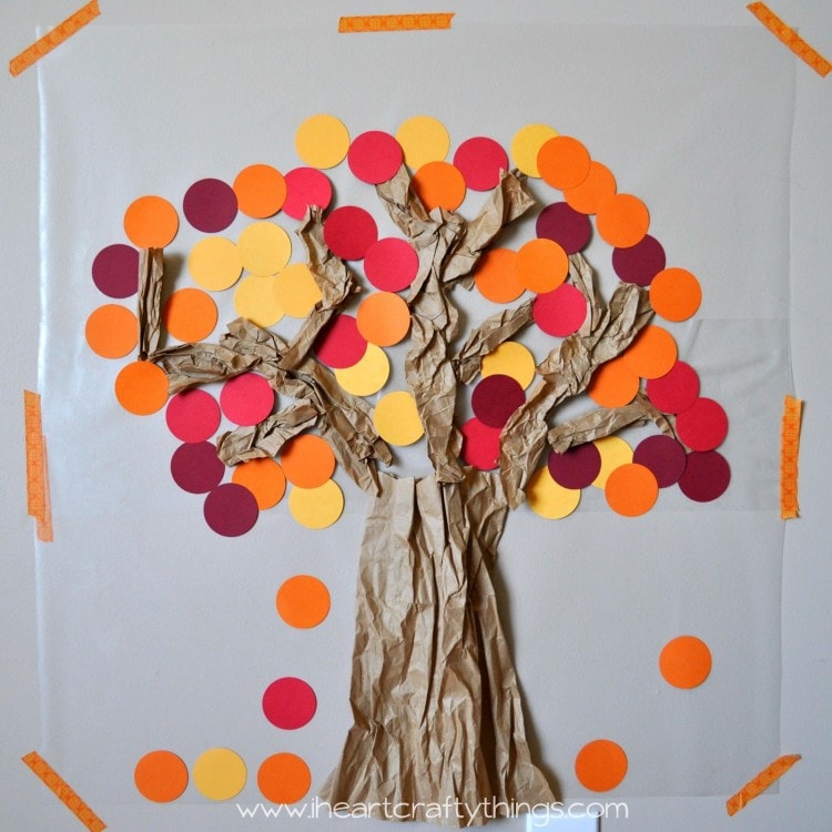 The crinkled brown paper popping off of the contact paper really adds dimension to this tree. I am love with it’s beautiful fall colors!