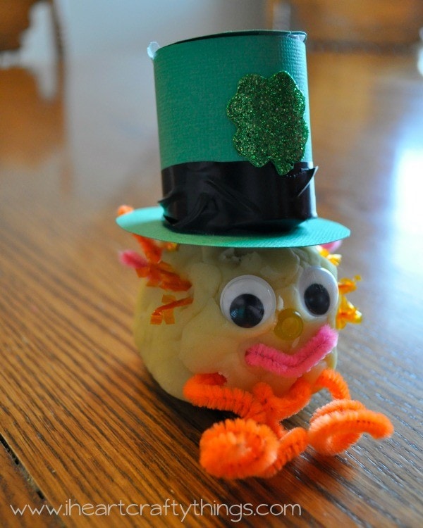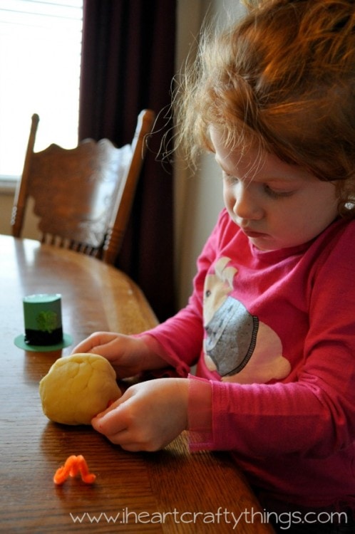 For the skin color of our Leprechaun we made this amazing Island Pineapple Jello Play Dough found at Modern Parents Messy Kids. It was our first time making Jello play dough and it is my new favorite! It smells heavenly and the texture is so smooth. I can’t wait to try all of the other flavors.