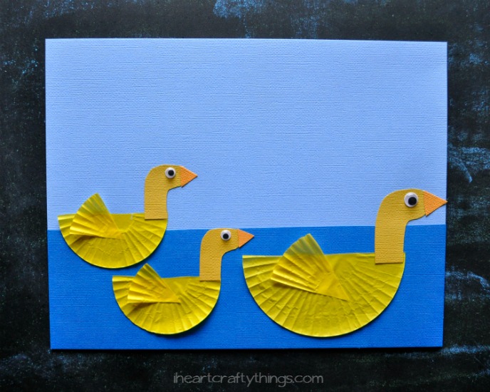 They turned out so cute, like a Momma Duck and two of her babies swimming in the water. You can personalize it even more with crayons to draw a sun or clouds, or marks in the water. Anything your heart desires.