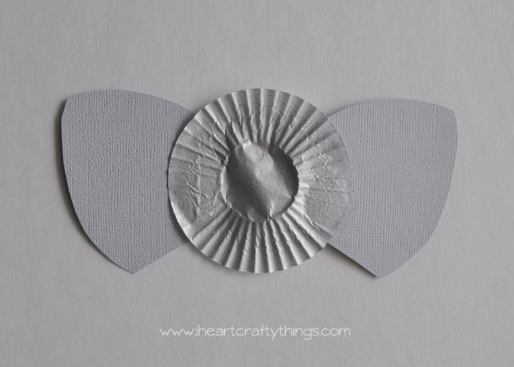 Glue your elephant ears to the back of your small gray cupcake liner with your glue stick.