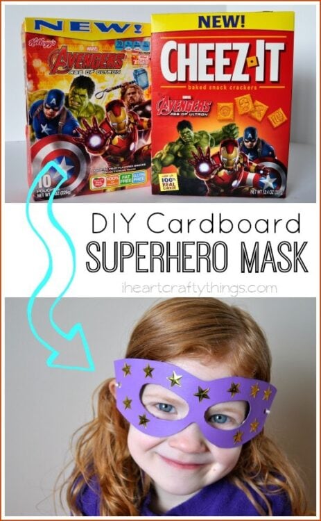 When my boys are busy playing Superheroes vs. Villains with their toys you will always find my daughter right in the middle of the fight showing her amazing action moves and proclaiming how she has the best superhero powers of all. Since she loves all things superhero, it came as no surprise last week when she asked me if we could buy some of The Avengers new snacks she saw at Walmart while we were shopping. In anticipation of MARVEL’s The Avengers: Age of Ultron coming to theaters on May 1st, we decided to turn The Avengers snack boxes into DIY Cardboard Superhero Masks.