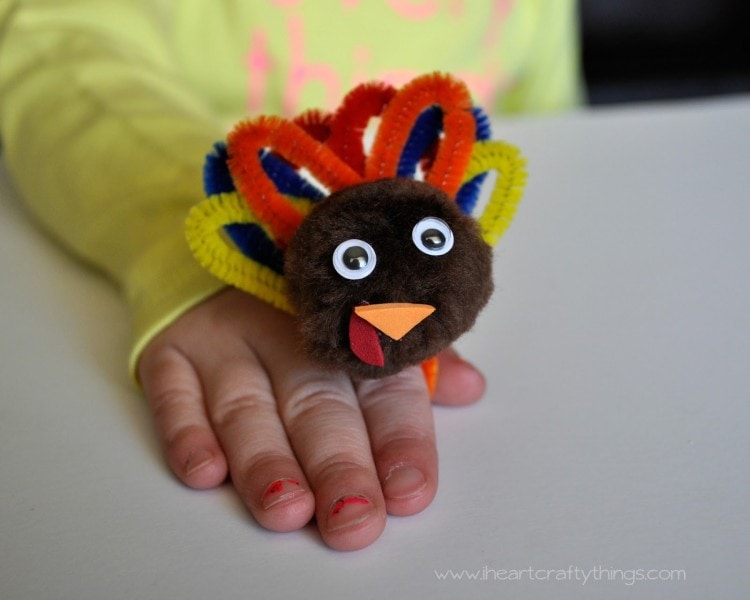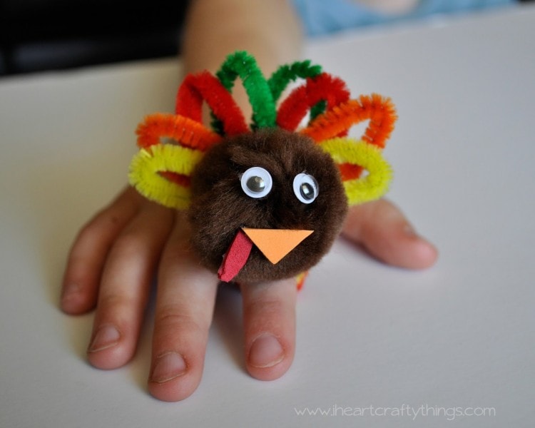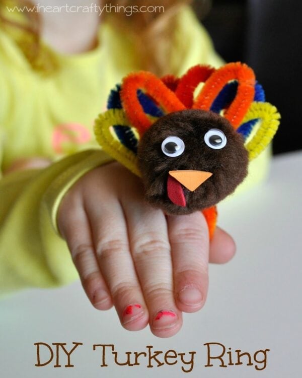When you are finished you are left with an adorable turkey ring. As you can see in the picture below it is large for my 4 year old, but she just loves it! She wore it the entire day today.