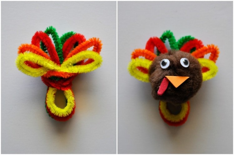 We used the DIY Spider Ring tutorial to make our Turkey ring with a few changes. See the details below.