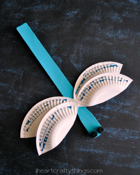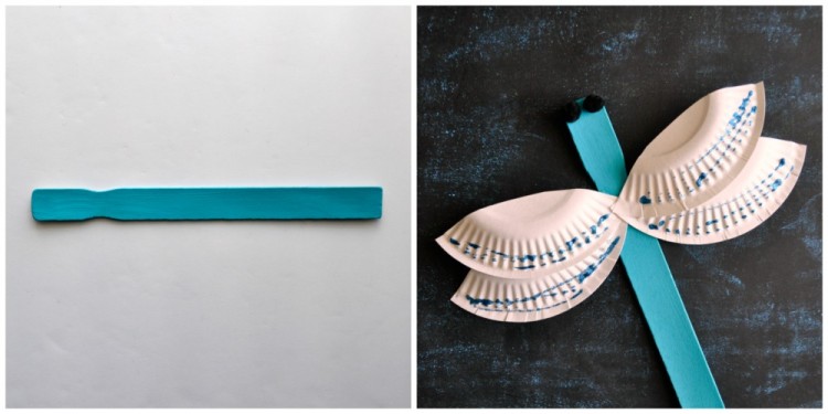 We are on a roll this week with dragonfly crafts. After we made our paint strip dragonfly earlier this week I took a look at the extra paint stirring stick I had and realized it was also perfect for making a Dragonfly craft too.