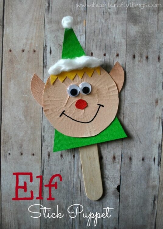 We are having a bit of a puppet obsession lately. They are so much fun, we just can’t help ourselves! We watched Rudolph the Red-Nosed Reindeer and Frosty the Snowman on TV last night and my daughter brought up the fact that we had Santa, Reindeer and a Snowman, but we hadn’t made an elf yet. We remedied that and added an Elf Stick Puppet to complete our collection.