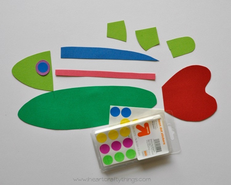 2. Use your round colored stickers to finish decorating your fish. Now have fun counting all the spots on every one’s fish.