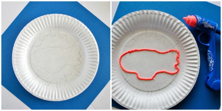 To start out, draw your design with pencil lightly onto your paper plate. You can keep it as simple or as challenging as you want. I went with the Nickelodeon blimp passing by a big blob of their signature green slime. Add a color into your DohVinci Styler and start tracing your design.