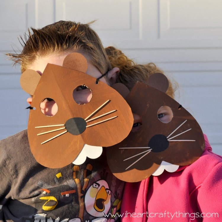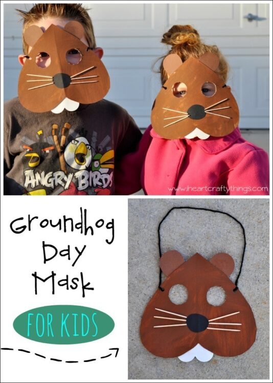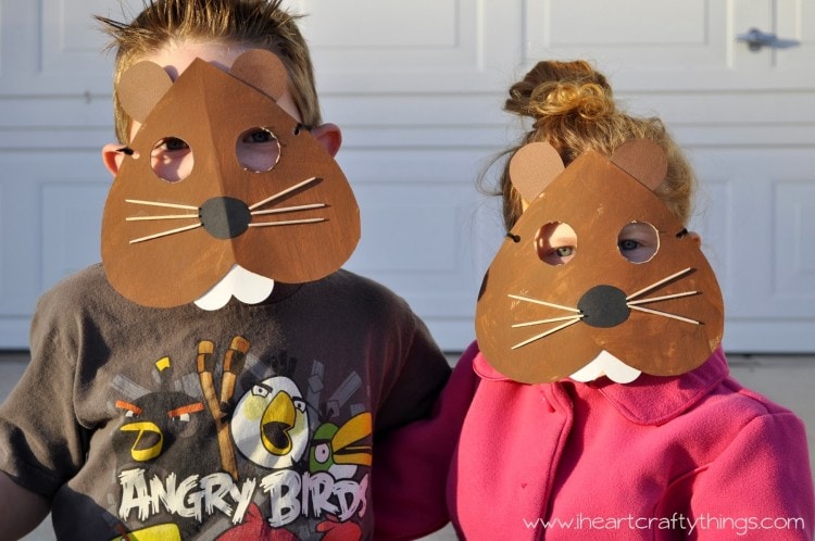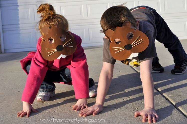 Last year our Paper Plate Groundhog Craft turned out looking like a beaver. Haha! So we went with a heart shaped face like we saw on internet to try to make it look more Groundhog-like. Since my kids love to dress up in costumes I decided the perfect way to celebrate Groundhog Day was for my children to be able to wear a Groundhog Mask and go out in the morning and pretend they were Punxsutawney Phil and see if they could see their shadow.