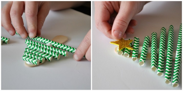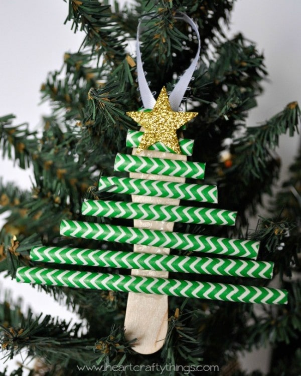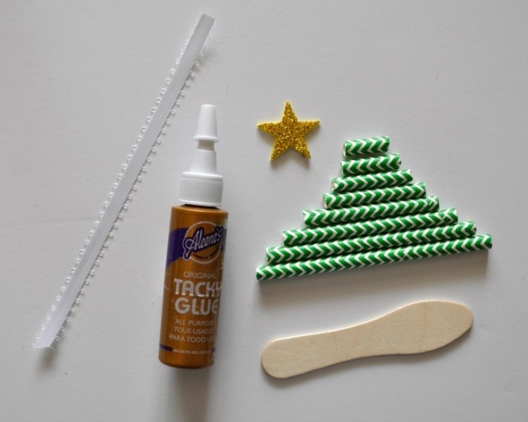 I picked up a package of green paper straws several weeks ago and had been itching for a fun way to use them. After reading the story with my daughter I was inspired and we put together a simple and adorable Christmas Tree Ornament using paper straws.