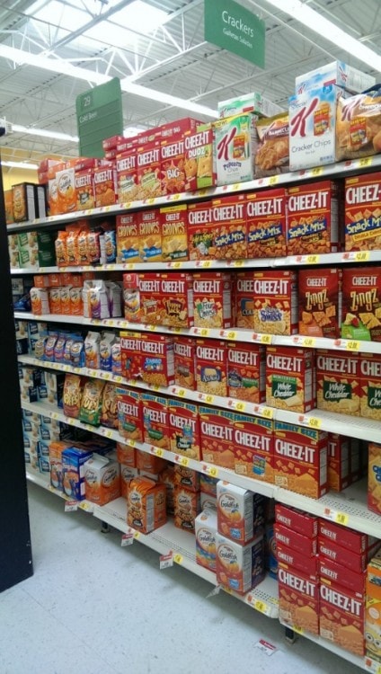 Goldfish crackers are on rollback at Walmart right now which made this activity super convenient. I found mine in the crackers section with the rollback tags calling my name on the bottom row of the shelf.