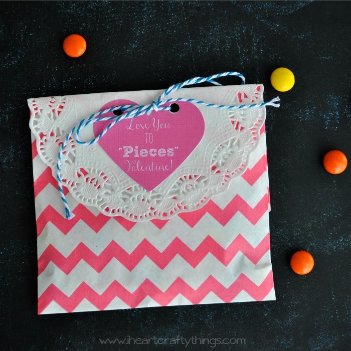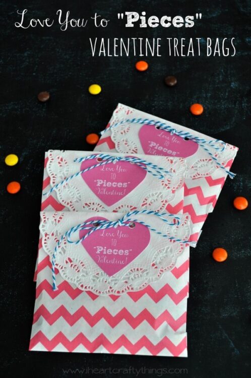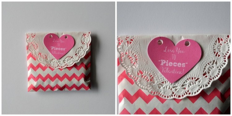 Every year I love making a little special treat for my kids for Valentine’s Day to make them feel extra special. Today I started putting together these simple Love You to “Pieces” Valentine Treat Bags that I wanted to share with you. These can be used for friends, teachers, classmates or anyone extra special, and your kids can even help you make them.