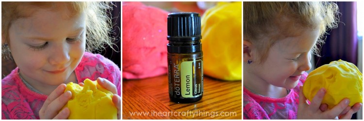 The secret behind our wonderful lemon scent was my doTERRA Lemon Oil. I started by adding in 10 drops and kneaded it in completely and then added more, 5 drops at a time, until I achieved a strong, yummy lemon scent. I wish you could smell it through the computer screen because it is seriously heavenly! My daughter loved smelling it!