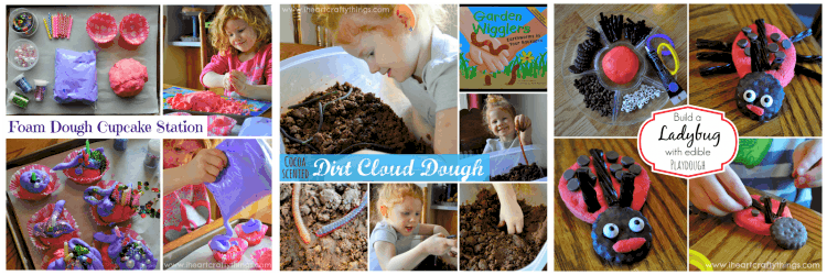 In case you missed any prior months, make sure to check out our Cupcake Foam Dough, Digging for Worms Cloud Dough and our Build a Ladybug with Edible Playdough.