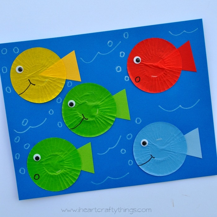 We have been having some fun making Dr. Seuss-inspired crafts this week. Yesterday I shared our Cat in the Hat Craft and today I’m excited to share our cupcake liner craft that goes with Dr. Seuss’ book One Fish Two Fish Red Fish Blue Fish. Cupcake liners make such adorable fish!
