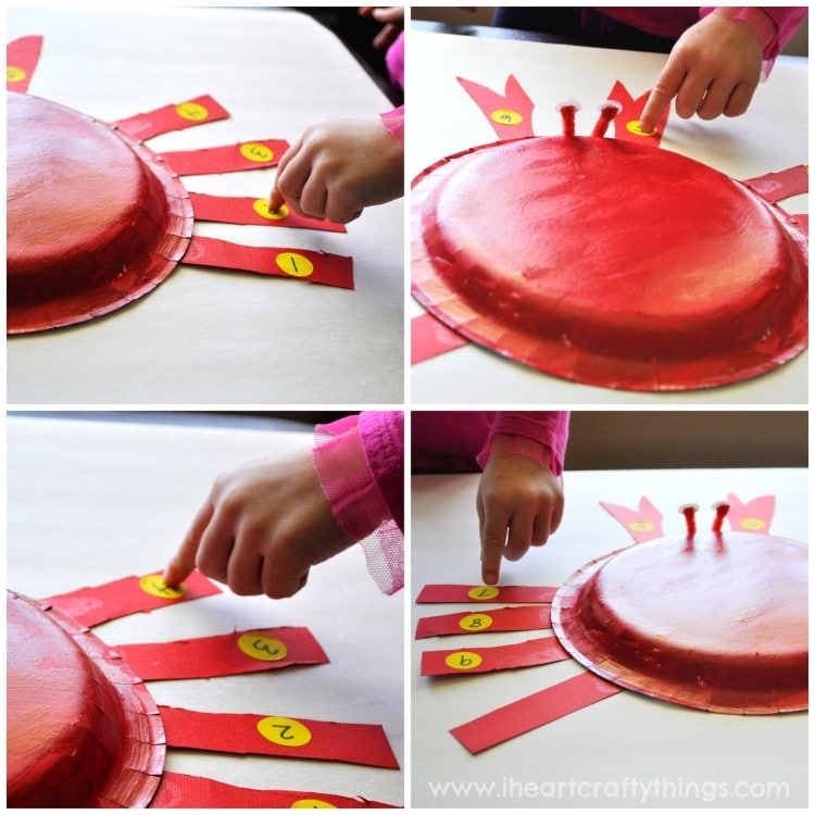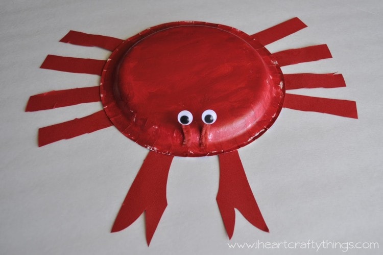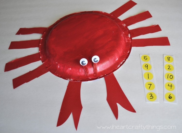 Use glue dots or school glue to attach the legs to the bottom of the crab.