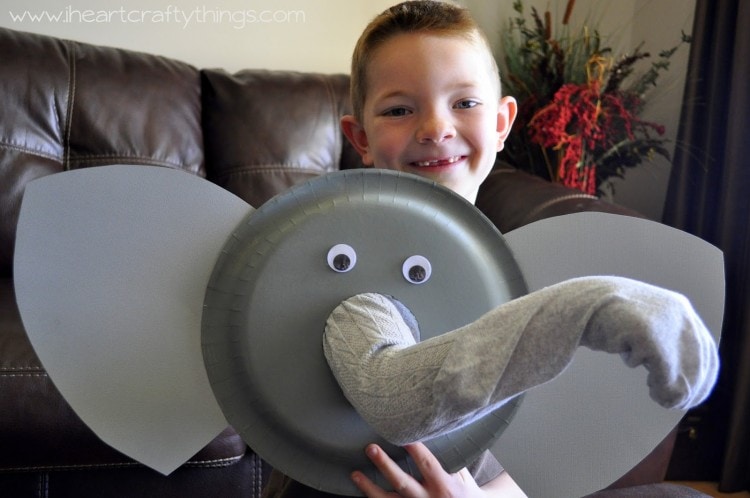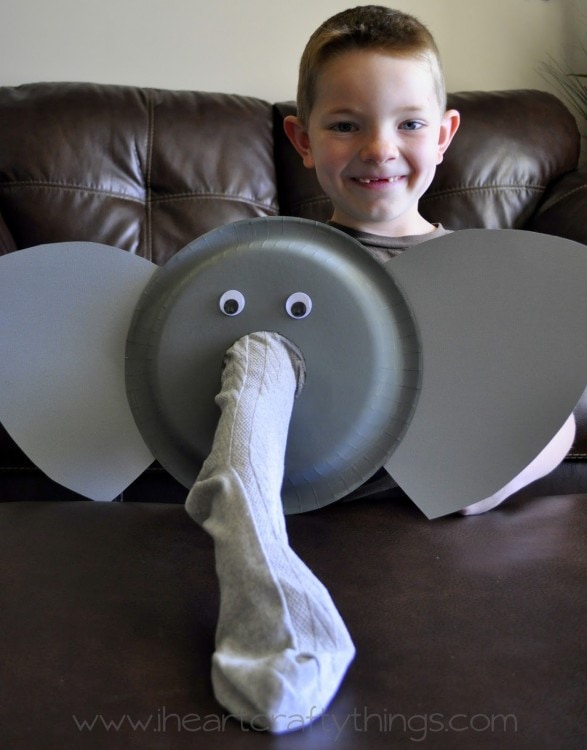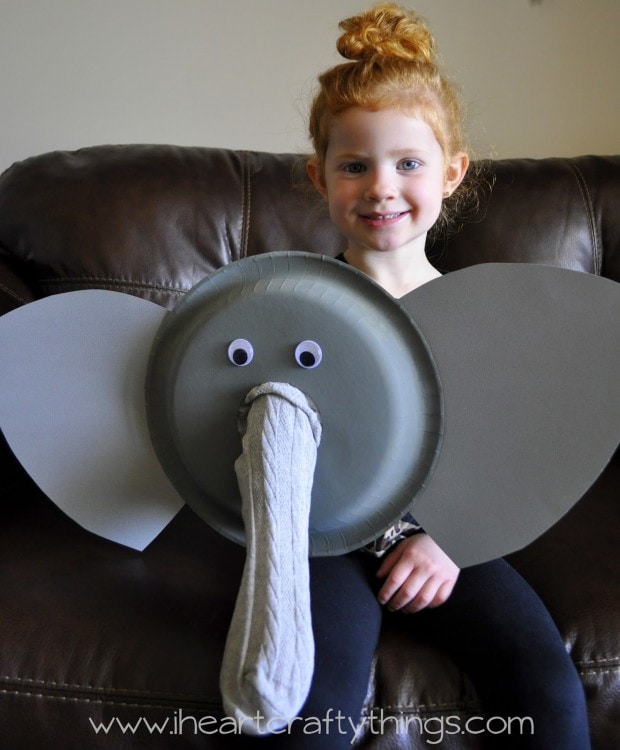 Just put your arm in the sock hole in the back of the paper plate and you have an elephant truck!
