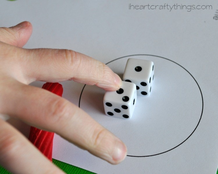 Have your preschooler roll the two dice inside the circle of the printable. Have them count the number they rolled.