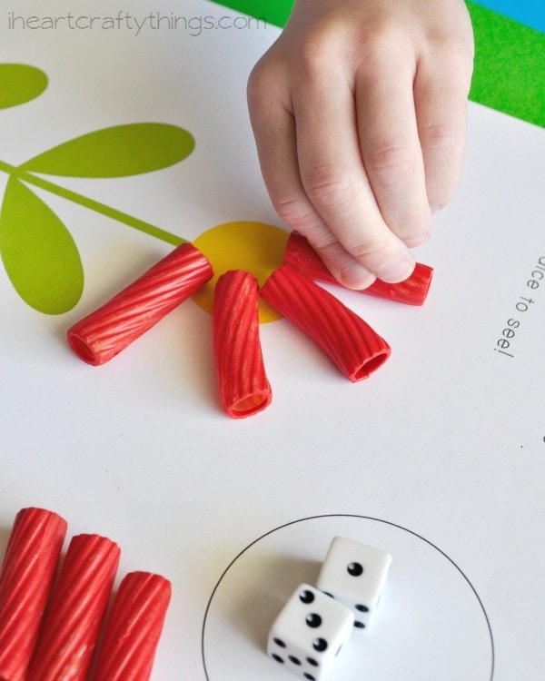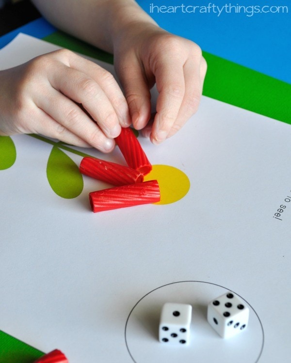 3. When you are ready to play the game, print off the Flower Dice Game Printable. I recommend printing it off on cardstock paper or heavy weight printer paper and get your 2 dice ready.