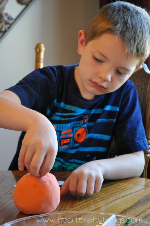 I always love watching my children’s deep concentration when working with play dough and forming their creations. For my daughter, her lip pouts out and her eyebrows crinkle together. When I see that look I know she’s in the zone with the activity.