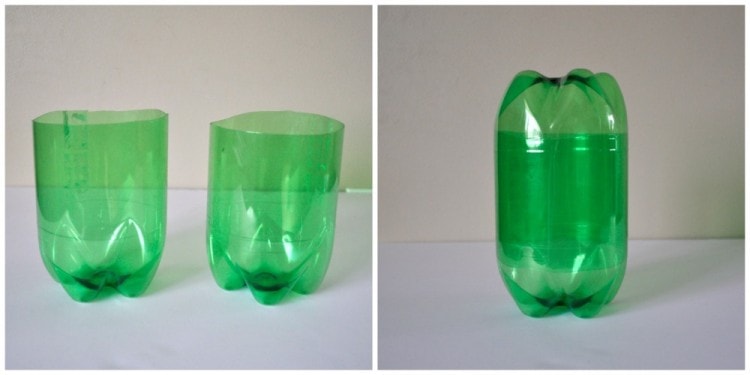 - two empty and clean 2-liter soda bottles (we used green Gingerale bottles)