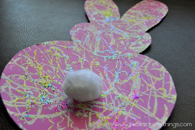 Glue on a large Pom for the bunny tail and let the craft dry completely.