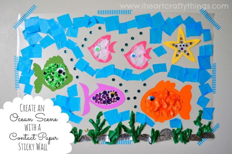 Head over to Brassy Apple today where I’m sharing this fun summertime craft…An ocean scene made out of a contact paper sticky wall.