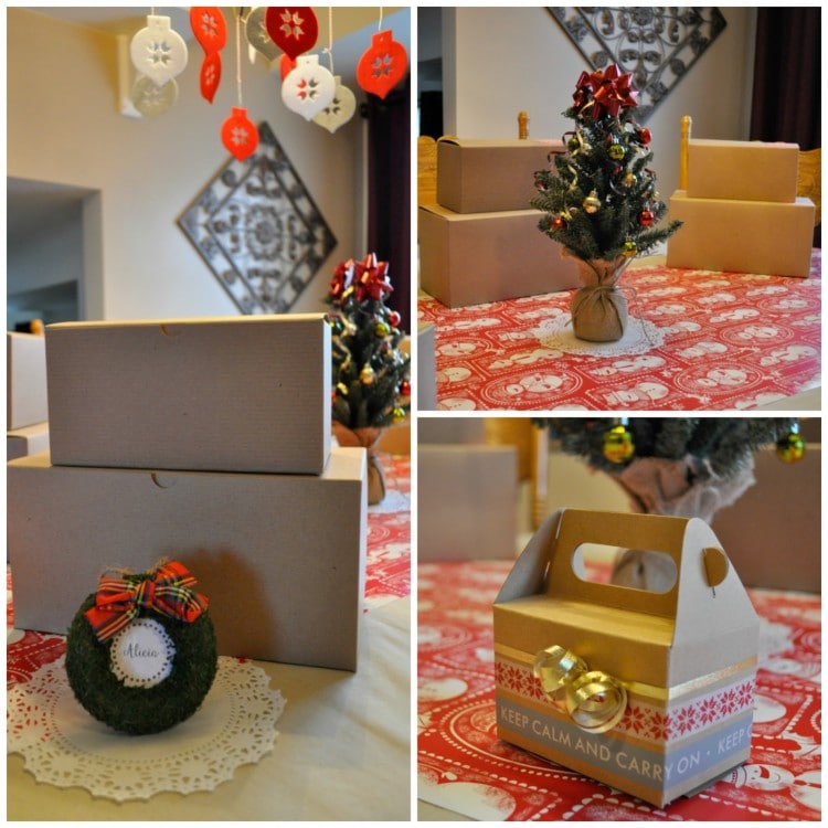 Simple decorations helped set the tone for our Christmas theme and the personalized table setting frames made my guests feel extra special. We started out with eating some delicious food and after a wonderful evening of creating our Felted Forest Trees, my guests left with a party box with the message to “Keep Calm and Carry On”.