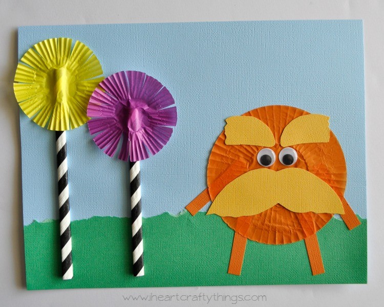 We have been having a Dr. Seuss-inspired week! So far we’ve had fun with The Cat in the Hat and One Fish Two Fish Red Fish Blue Fish and today I’m sharing one of my absolute favorites, The Lorax. We enjoy the book, but hands down, The Lorax movie has to be one of my kids’ all-time favorite movies. Confession…I’m pretty sure I love it as much as my kids too. After reading the book or watching the movie, whip out some colorful cupcake liners and have fun making this adorable Lorax craft.