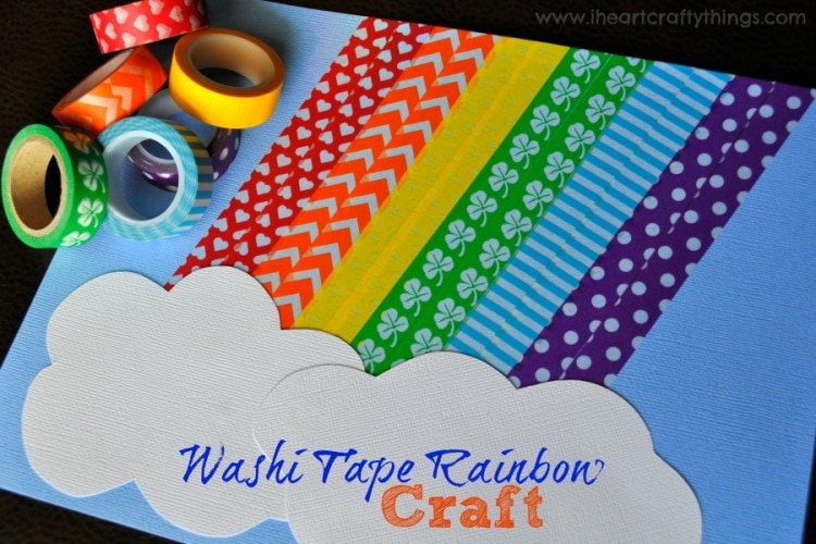 It’s a week before St. Patrick’s Day and we just had to get one more Rainbow Craft in. We love washi tape crafts at our house! I pulled out my collection from my craft closet and picked out one of every color of the rainbow in different patterns for our rainbow project.