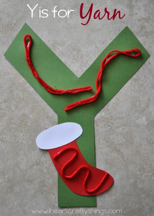 Continuing with the Alphabet Christmas/Winter Theme I’m also sharing with you a Y is for Yarn Craft. Y is one of those tricky letters that is hard to correspond with Christmas or Winter, but ultimately I think yarn works great. It’s common for people to have knitted stockings or homemade knitted hats, scarves or mittens so here is a simple way to learn about the letter Y.