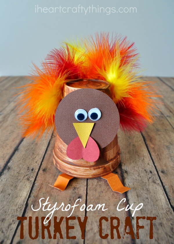 Start by painting the outside of your styrofoam cup with your brown paint and set it aside to dry completely.