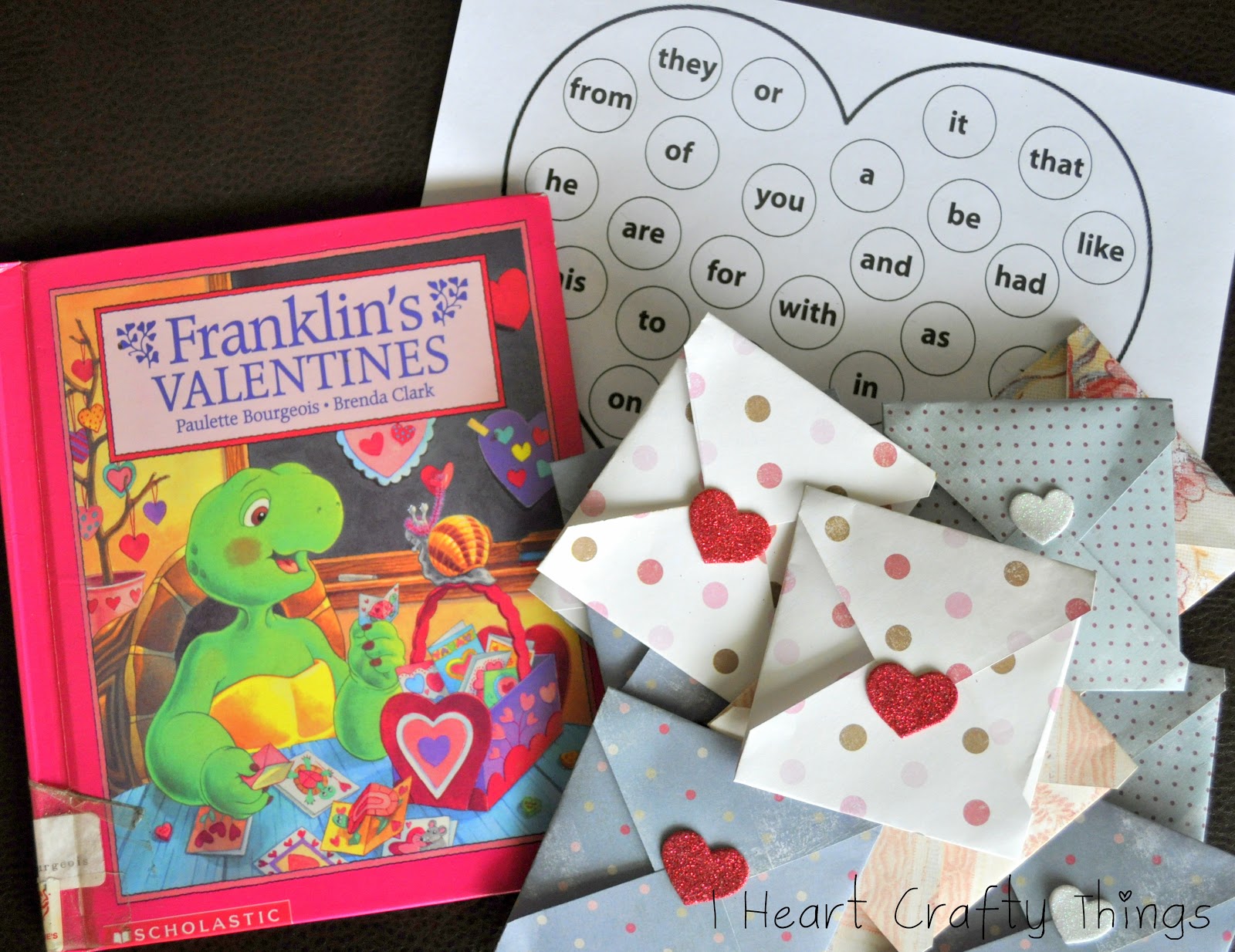 First we read “Franklin’s Valentines” by Paulette Bourgeois and Brenda Clark. In the story, Franklin’s Valentines drop out of his backpack as he runs to school and when it’s time to pass them out to his classmates he realizes they are not in his backpack. I used this tidbit in my sight word practice activity.